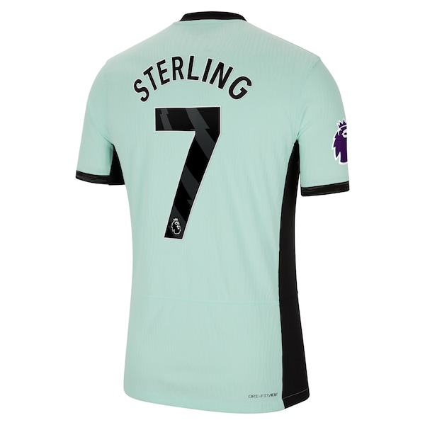 Look and feel like your favorite Chelsea player on match day with this Raheem Sterling 2023/24 Third Match Authentic Player Jersey. This Mint jersey. part of Chelsea's third kit this season. is designed to the exact same specifications as the ones the players wear on the pitch. The Nike Dri-FIT ADV will keep you dry and comfortable wherever you watch The Blues.