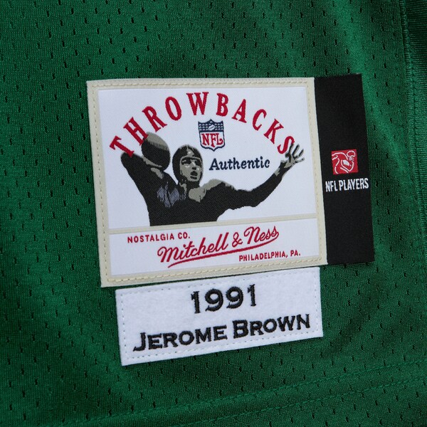 Grab this Jerome Brown 1991 Authentic Jersey from M & N to show off your deep-rooted Philadelphia Eagles spirit. It features tackle twill graphics to put your team pride on full display. The mesh fabric offers a lightweight and breathable feel so you can cheer on the Philadelphia Eagles in full comfort.