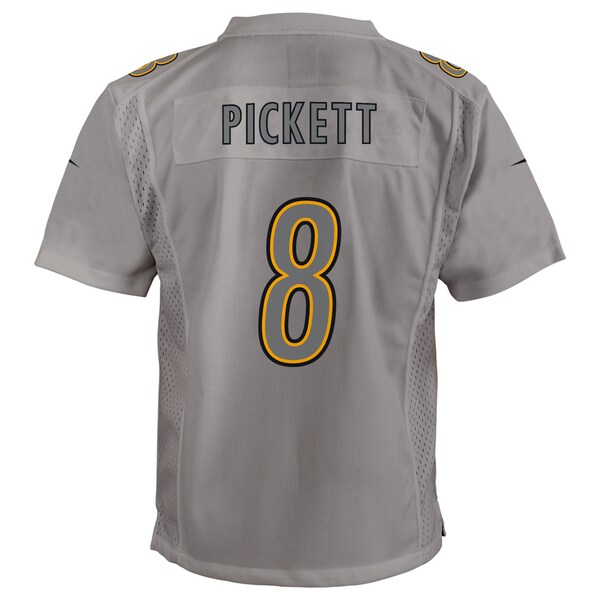 Up your youngster's Pittsburgh Steelers look with this Kenny Pickett Atmosphere Game jersey by Nike. Its tailored fit is designed for movement. and mesh side panels ensure they stay cool and comfortable all day long. Authentic team details with a unique color palette make this replica jersey a standout piece in your young fan's Pittsburgh Steelers collection.