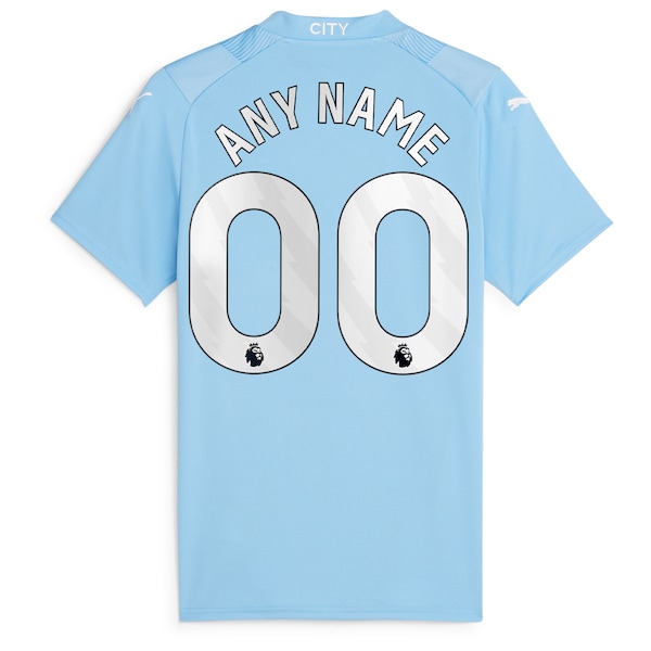 We want fans to celebrate their fandom by customizing and personalizing certain products. For these customizable products. including jerseys. we invite customers to tell us how they would like their preferred name or other text to appear by typing that text into the field indicated. However. just because a customer is able to type proposed customization text into the field and is able to complete the order through the website. not all proposed customization text will be accepted. Please note. Fanatics may reject and cancel any customization order for any reason. including for messages that are deemed offensive or inappropriate. Show your Manchester City pride for every match when you wear this 2023/24 Home Replica Custom Jersey from Puma. This jersey features DryCELL technology to help keep you dry and cool throughout the day. The unique Manchester City graphics and designs will make you proud to be a Cityzen whenever you wear it.