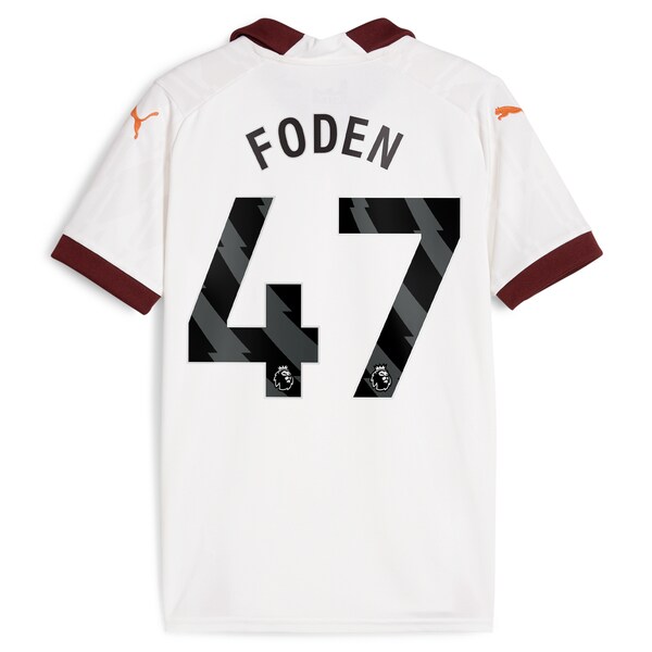 Your kiddo is going to love supporting their favorite squad with this Phil Foden 2023/24 Away Replica Player Jersey from Puma. This Manchester City jersey features DryCELL technology to help keep your little one cool and dry everywhere they go. Whether they're in the stands at the next big Manchester City game or taking the pitch themselves. your young fan will look and feel like the best in the world with this sweet jersey.