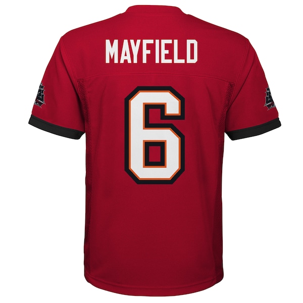 Get your young fan ready to cheer on their favorite team with this Baker Mayfield Tampa Bay Buccaneers Replica Player Jersey from Outerstuff. This jersey boasts a vibrant team color and features rubberized heat-sealed graphics. ensuring your little one looks like a true member of the Tampa Bay Buccaneers. The lightweight mesh fabric side panels provide added breathability. keeping your young fan cool and comfortable while cheering on their favorite player in the league.